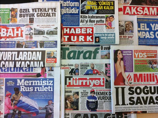 Daily RADIKAL carried the headline, "Russian Roulette without Bullets," and reported that Russian President Vladimir Putin had recognized the independence of Crimea after the referendum result in favor of joining Russia despite the outcry of the West -- including Turkey -- while Tatar leaders are worried over the possibility of annexation.