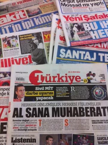 Turkish dailies on Tuesday covered a wiretapping scandal by a 'parallel organization' which the government says is nestled in the judiciary and police wiretapped 7,000 people, among them ministers and high-ranking figures from politics, business, civil society, media and academia.