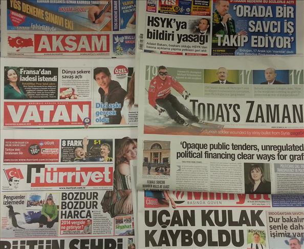 Daily Hurriyet also covered Erdogan’s statements during his speech in the Turkish province of Manisa. Hurriyet highlighted on their frontpage Erdogan’s remarks on the corruption issue, saying “I would not let go off anyone, even if it was my son.” The statement comes amid the graft case on the government.