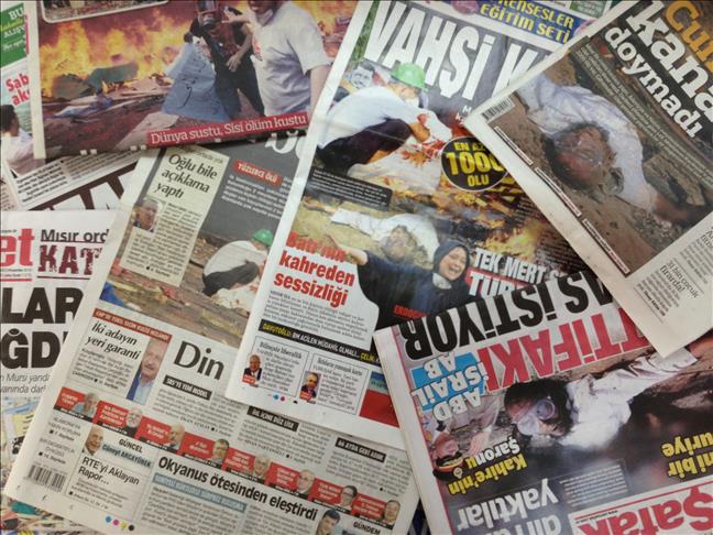 On their Thursday editions, all of the Turkish dailies provided wide coverage of developments regarding the Egyptian crackdown on pro-Morsi sit-ins as well as the reactions of the global community and condemnation over the violence in the country.