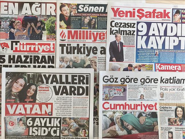 Meanwhile, most Turkish dailies continued to cover the stories of the dozens of young people murdered in the deadly attack.