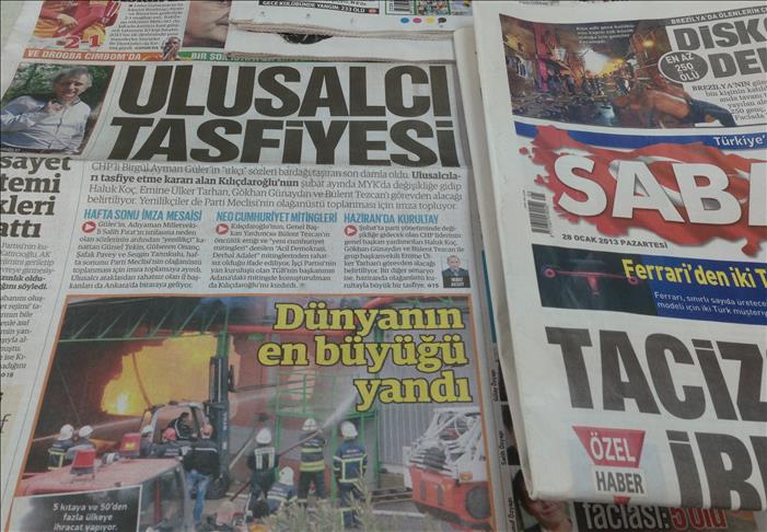 Some of the Turkish dailies covered the divisions within the Turkish main opposition People's Republican Party (CHP) sharpening over Kurdish row following the racist statements of the MP from CHP Birgul Ayman. The CHP is trying to tackle internal turmoil following the resignation of a deputy with Kurdish origin, according to daily HURRIYET. "Elimination of Nationalists" headlined daily YENI SAFAK over speculations that Kilicdaroglu is planning to get rid of nationalists in party congress in February.
