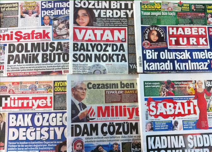 The case of a young woman brutally killed last week has dominated the headlines of many Turkish dailies for a second day.