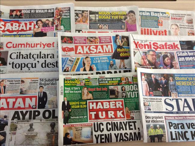 Most of Thursday's dailies dedicate their front pages to Turkish President Recep Tayyip Erdogan’s criticism of U.S. President Barack Obama for what Erdogan described as America’s “silence” over the shooting dead of three young Muslims in North Carolina this week.