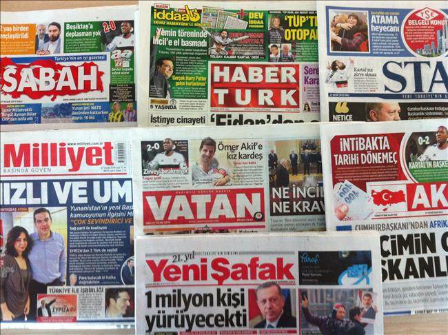Turkish president Recep Tayyip Erdogan and Greece's new premier Alexis Tsipras made the headlines of most domestic dailies on Tuesday.