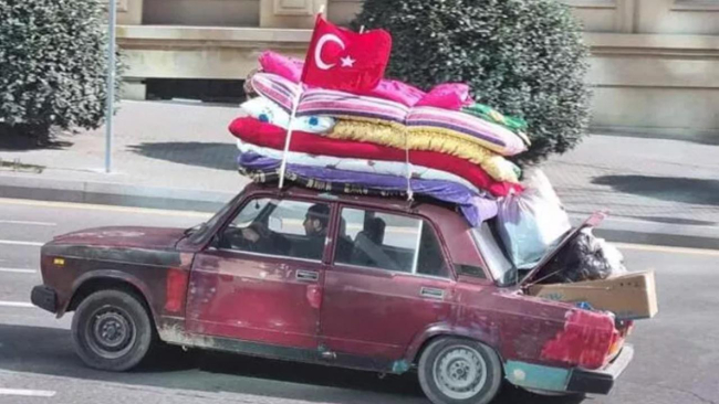 A photo of him driving through the streets of Azerbaijan's capital Baku in his decrepit car, bowing under the weight of several thick blankets and other supplies he collected to help the survivors as a Turkish flag fluttered on its roof, went viral in Türkiye and other parts of the world soon after the quakes.