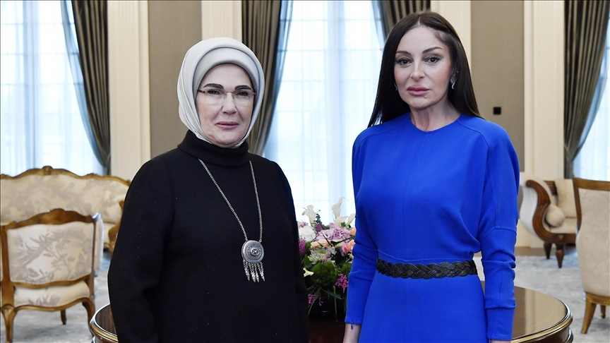 Turkish first lady Emine Erdogan and her Azerbaijani counterpart Mehriban Aliyeva met in the Turkish capital Ankara on Monday.