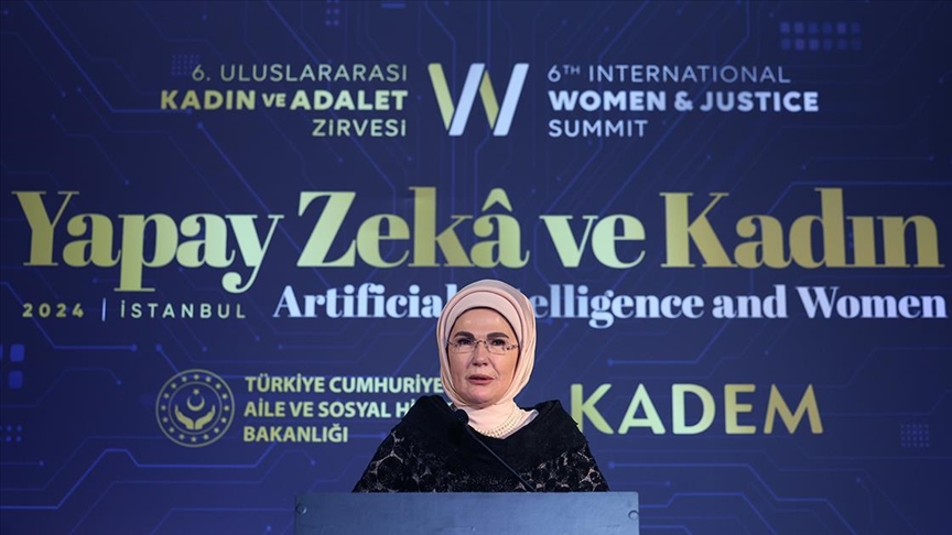 Türkiye’s first lady emphasized the critical role of women in society and the need for a justice-centered approach to technology at the 6th International Women and Justice Summit in Istanbul.