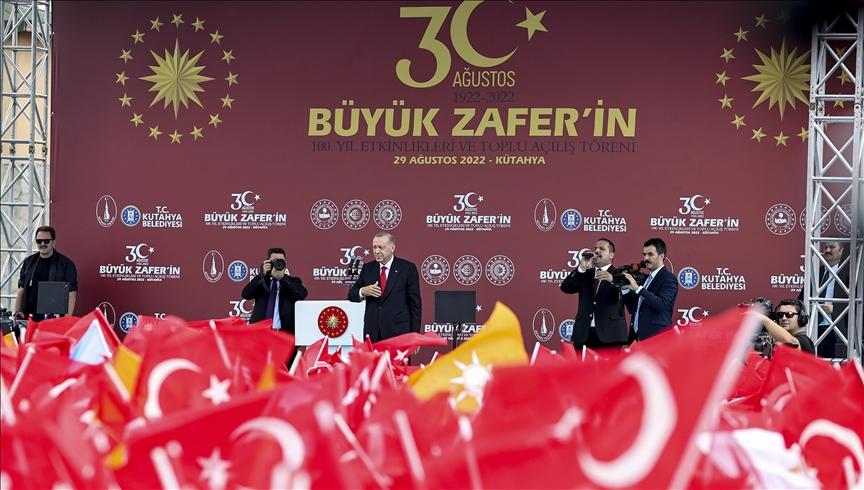 “The Great Offensive and the succeeding clashes went down in the military history of the world as the most successful example of all-out war," Erdogan said at the centenary celebrations of the Aug. 30 Great Victory in Kutahya province.