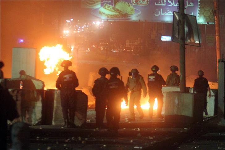 Israeli soldiers used live ammunition and teargas to disperse Palestinians protesting near Qalandia checkpoint early on Thursday. The Palestinians pelted the Israeli soldiers with stones, fireworks and Molotov cocktails, leading to the burning of a military tower in the area.