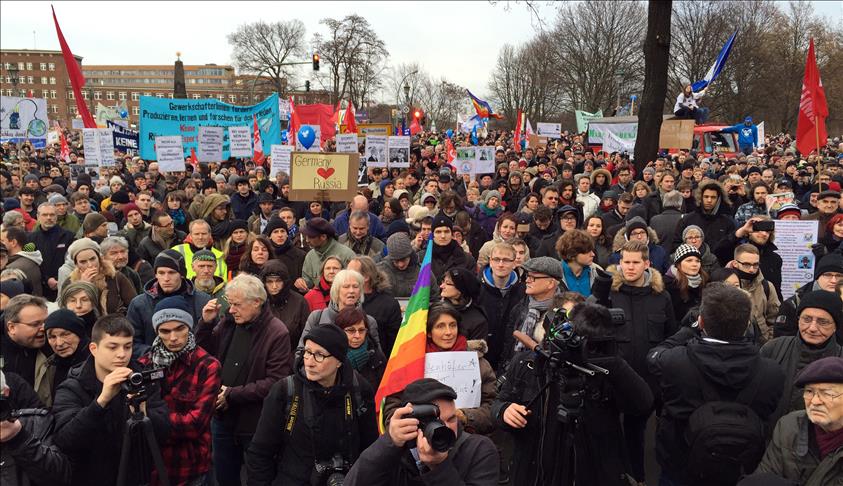 German politicians, including Germany's left-wing Die Linke lawmaker Diether Dehm, also took part in the demonstration.