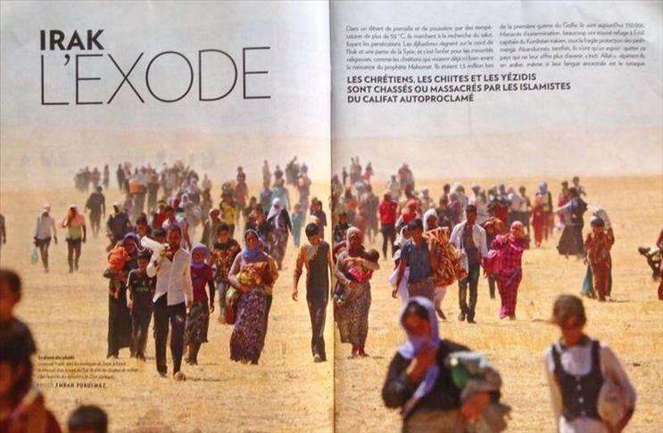 Paris Match, the flagship magazine of photojournalism in France, published a double page spread of an Anadolu Agency picture, showing Ezidis in Iraq marching as they fled from Islamic State militants leaving behind homes and belongings to take refuge in the mountains of Sinjar.