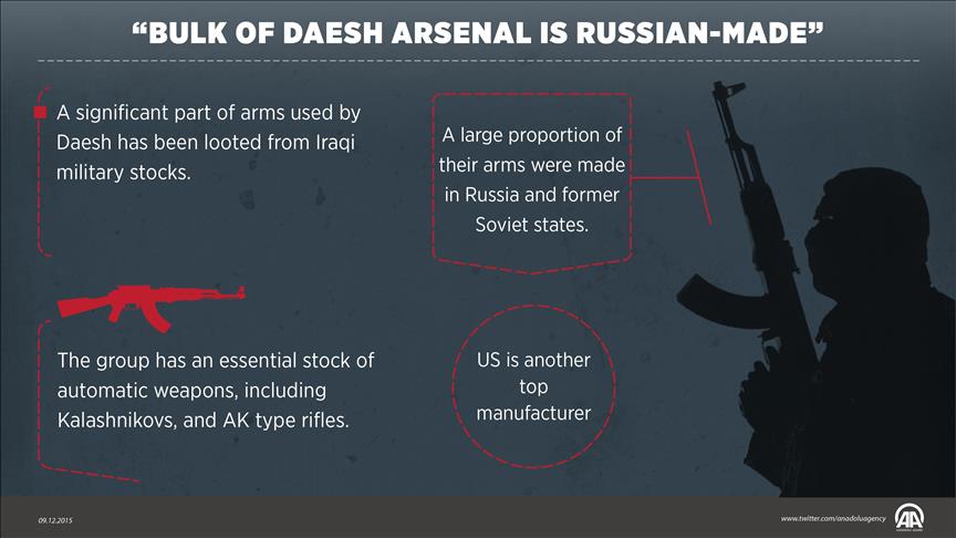 The majority of weapons used by Daesh come from supplies plundered from the Iraqi military and mainly consist of stock designed or manufactured in former Soviet bloc states, according to Amnesty International.