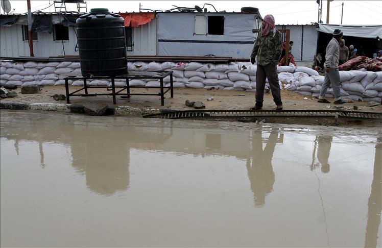 GAZA CITY (AA) – Dozens of makeshift housing units in the Gaza Strip were flooded on Friday due to heavy rains amid a cold snap which erupted this week across the Middle East region.