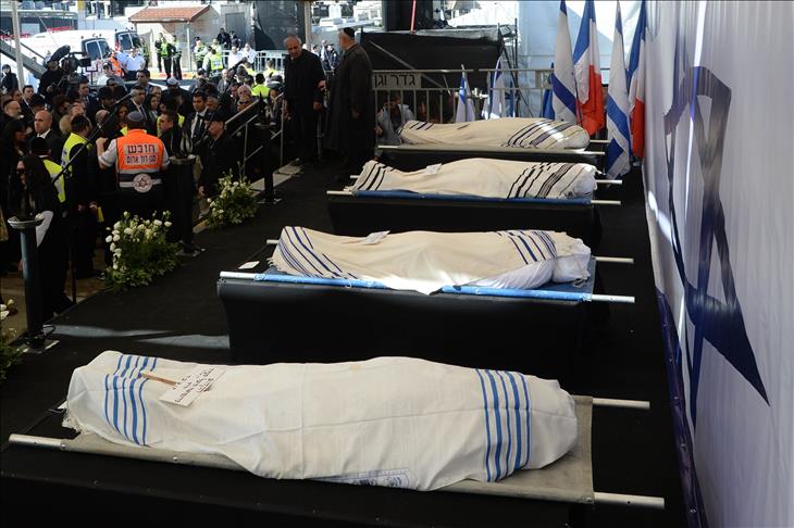The bodies of the four French Jews killed in the attack arrived in Israel early Tuesday.