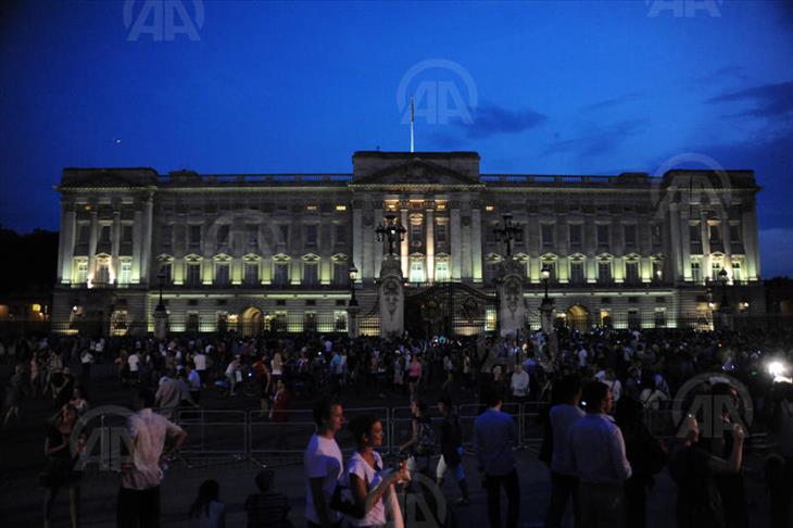 Rachel, striking with her red wig and UK flag patterned dress, said "I am in front of world's most beautiful palace. Today is a historic day. It would be nice if they named the baby as "George", but of course mother's happiness and baby's healthy is more important."