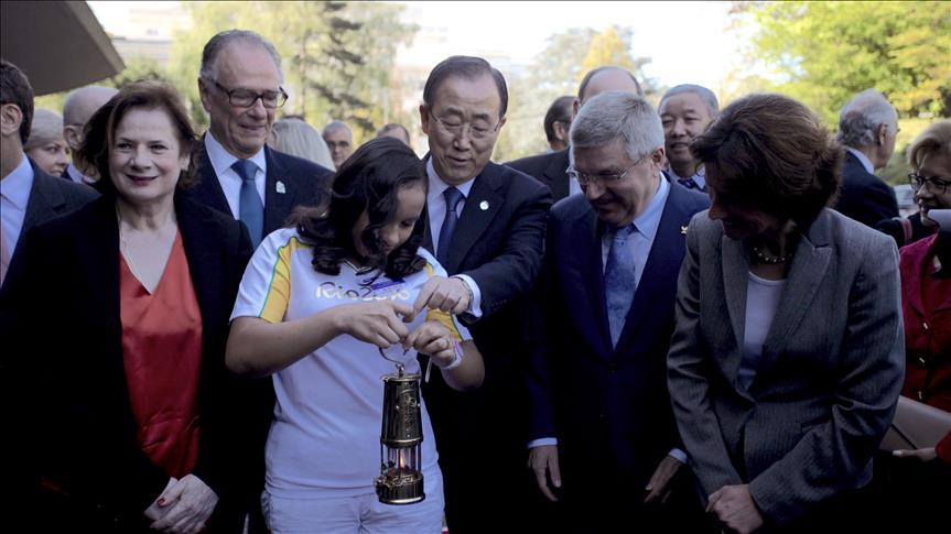 In his remarks made at the ceremony, Ban said: "This flame is a beacon of solidarity with all peoples of the world."