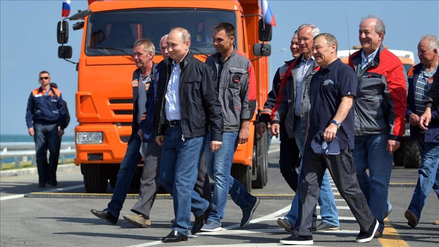 Russian President Vladimir Putin opened a controversial new bridge on Monday crossing a strait from mainland Russia to Russian-occupied Crimea.