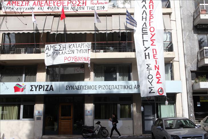 SYRIZA staff were forced on Sunday to leave the building in the face of the action by the group members calling themselves "anti-government anarchists".