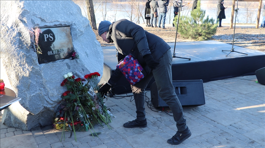 Relatives and colleagues of the victims on flight PS752 lit lamps and laid flowers sign in the center of Kyiv to mark the second anniversary of the incident.