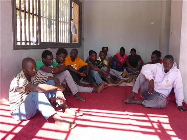 The migrants look tired. Their clothes are ripped and some do not have any shoes. Most have travelled the desert to get to Libya, a journey that can take up to a month depending on where they are coming from. Some have travelled from as far-a-field as Nigeria.