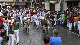 Miles de personas llenaron la plaza Consistorial vestidas con pantalones y camisetas blancas y luciendo pañuelos rojos al cuello para celebrar el inicio del festival que durará hasta el 14 de julio.06 de julio de 2024