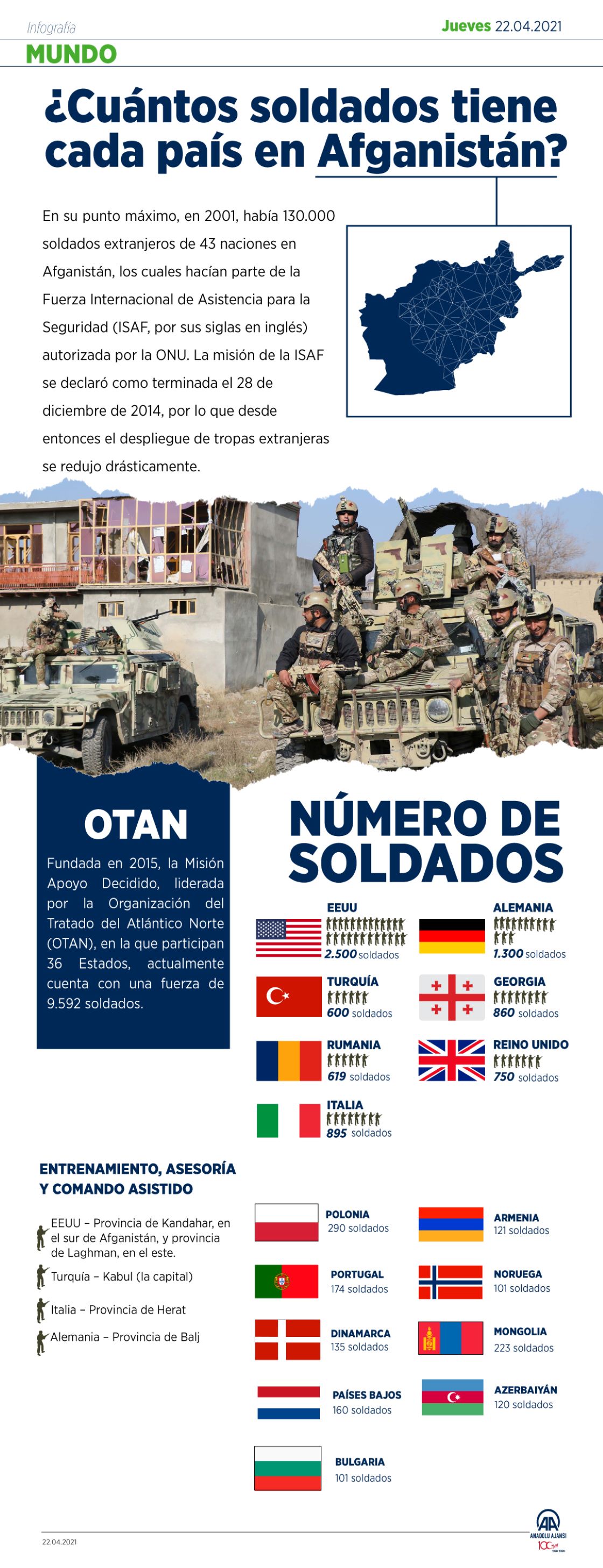 ¿Cuántos soldados tiene cada país en Afganistán?