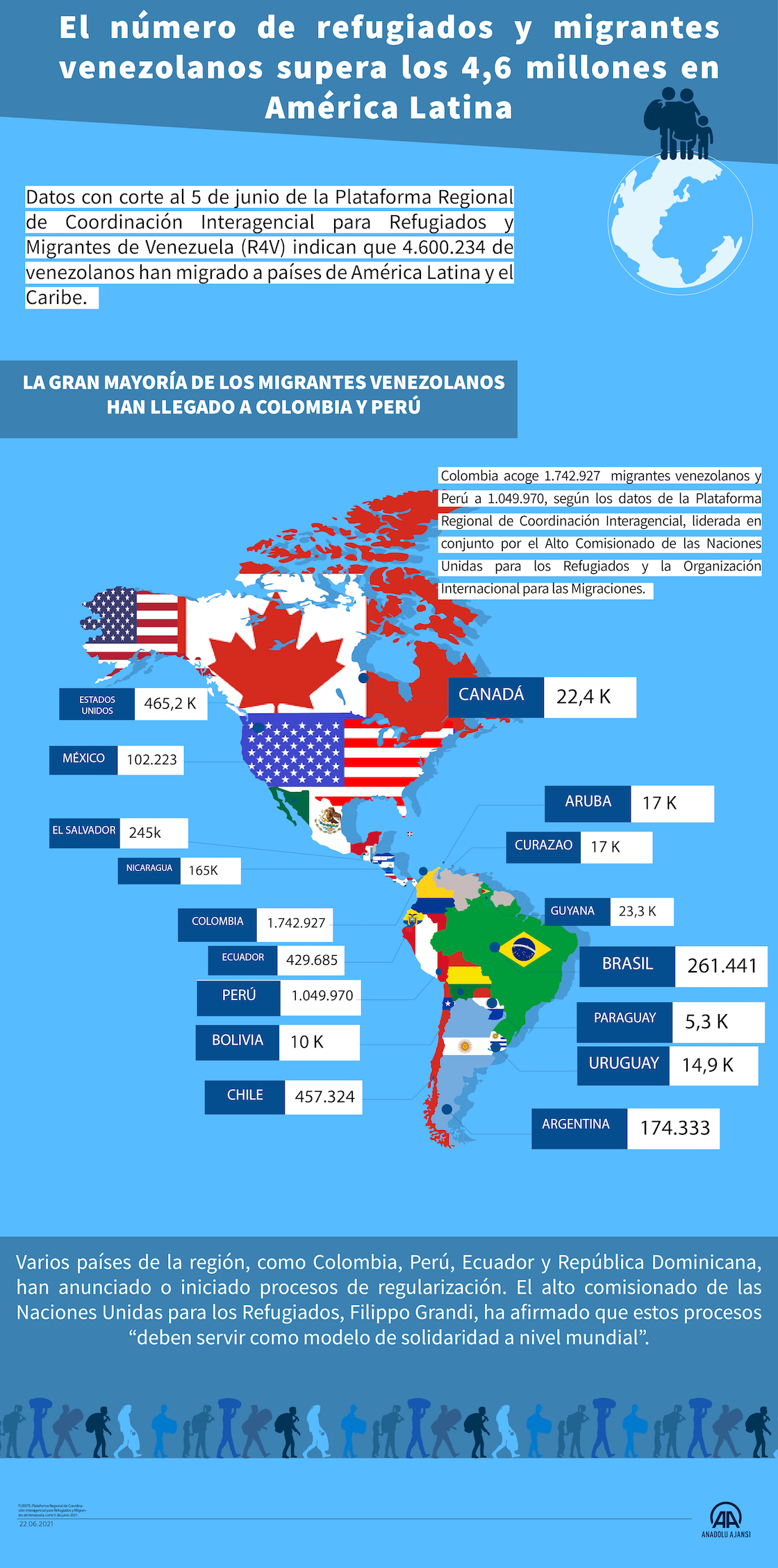 El alto comisionado de las Naciones Unidas para los Refugiados, Filippo Grandi, ha afirmado que las estrategias de regularización de migrantes venezolanos que han surgido en América Latina “deben servir como modelo de solidaridad a nivel mundial”.23 Junio 2021•Actualizar: 24 Junio 2021
