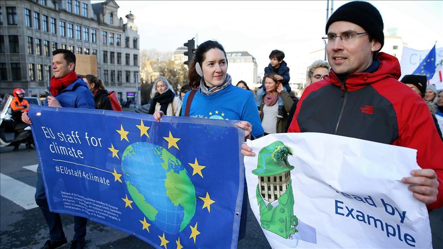 Activistas climáticos protestaron este jueves contra los nuevos planes de acción de los países europeos para el cambio climático antes de la cumbre de los líderes de la Unión Europea.