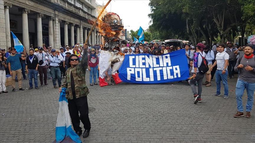 Decenas de manifestantes convocados por sindicatos y la Asociación de Estudiantes Universitarios (AEU) protestaron en la Plaza de la Constitución de Ciudad de Guatemala contra el Gobierno de Jimmy Morales y la corrupción en su país.