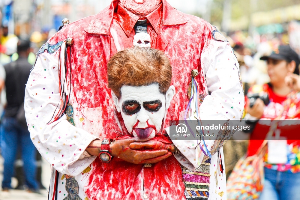 Cientos de personas disfrazadas participaron en uno de los desfiles del Carnaval de Barranquilla, norte de Colombia, el 27 de marzo de 2022. El tradicional evento cultural, catalogado por la UNESCO en 2003 como "Obra Maestra del Patrimonio Oral e Inmaterial de la Humanidad", tuvo su origen hace tres siglos y después de dos años de suspensión debido a la pandemia de la COVID-19, regresó con la asistencia de miles de personas, entre nacionales y extranjeros, que disfrutan de los desfiles de 500 grupos folclóricos. El espectáculo se desarrolla en el 'cumbiódromo' en un recorrido de 4,2 kilómetros de celebración.