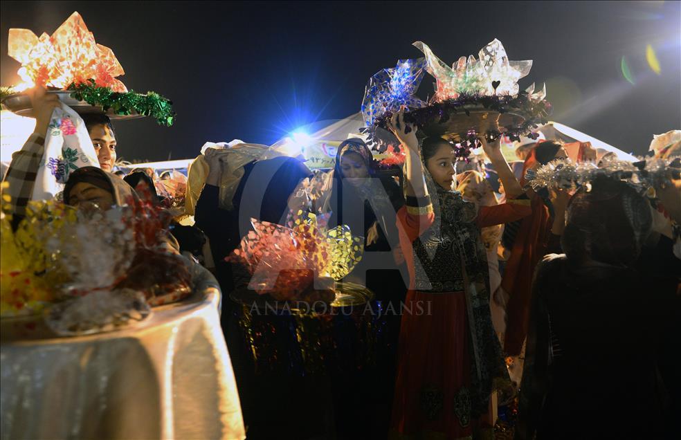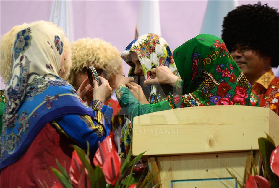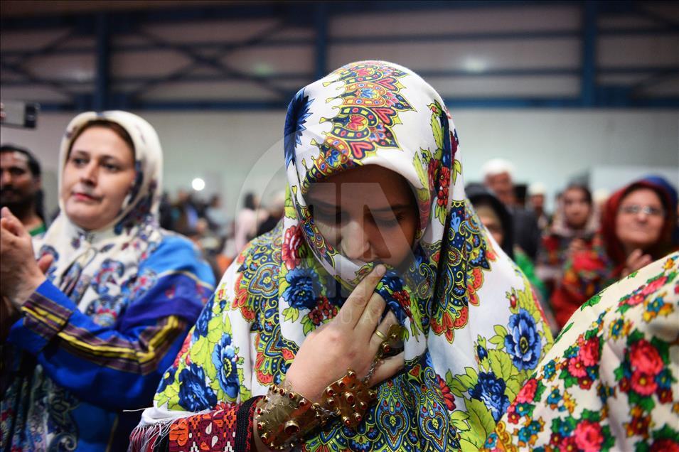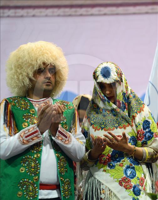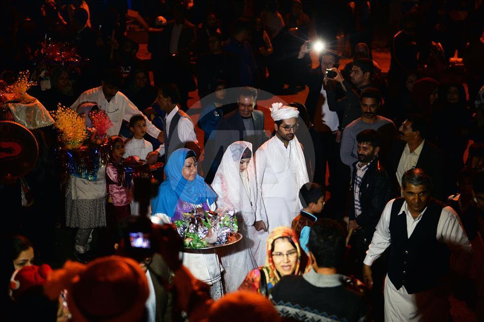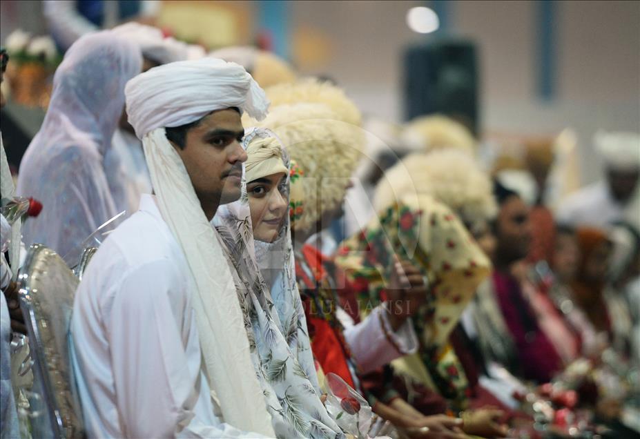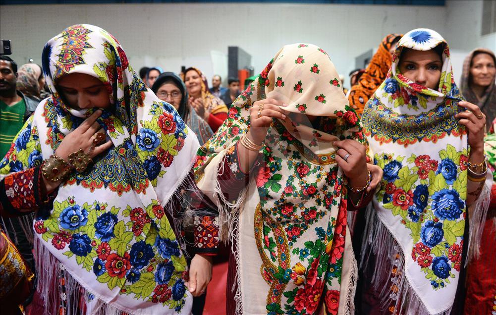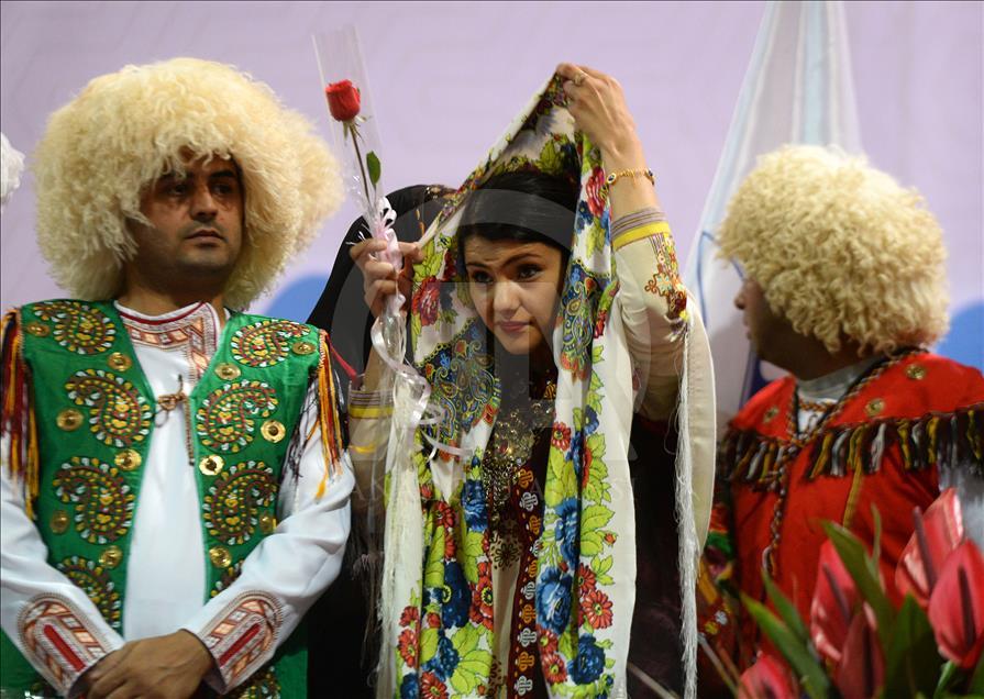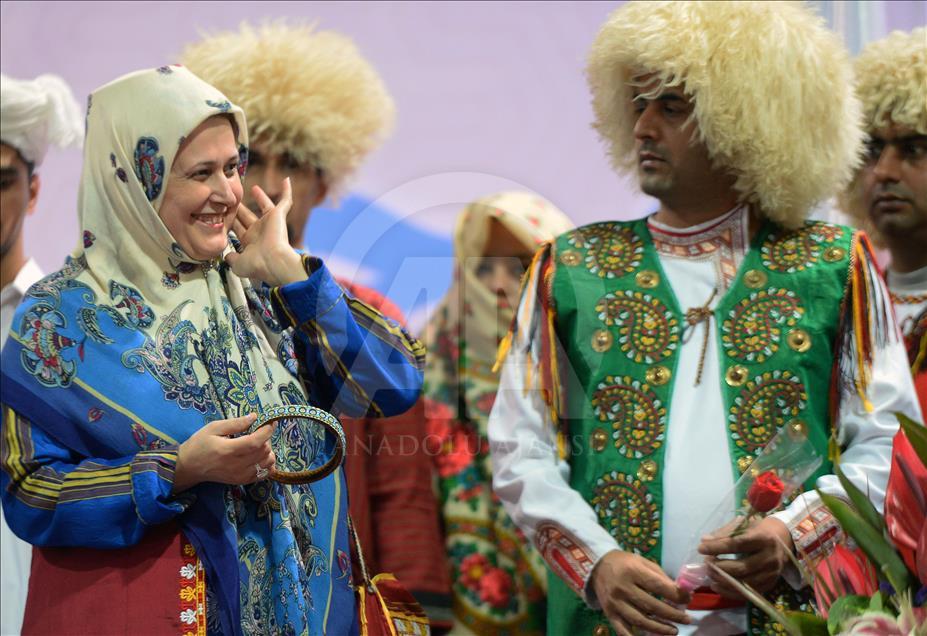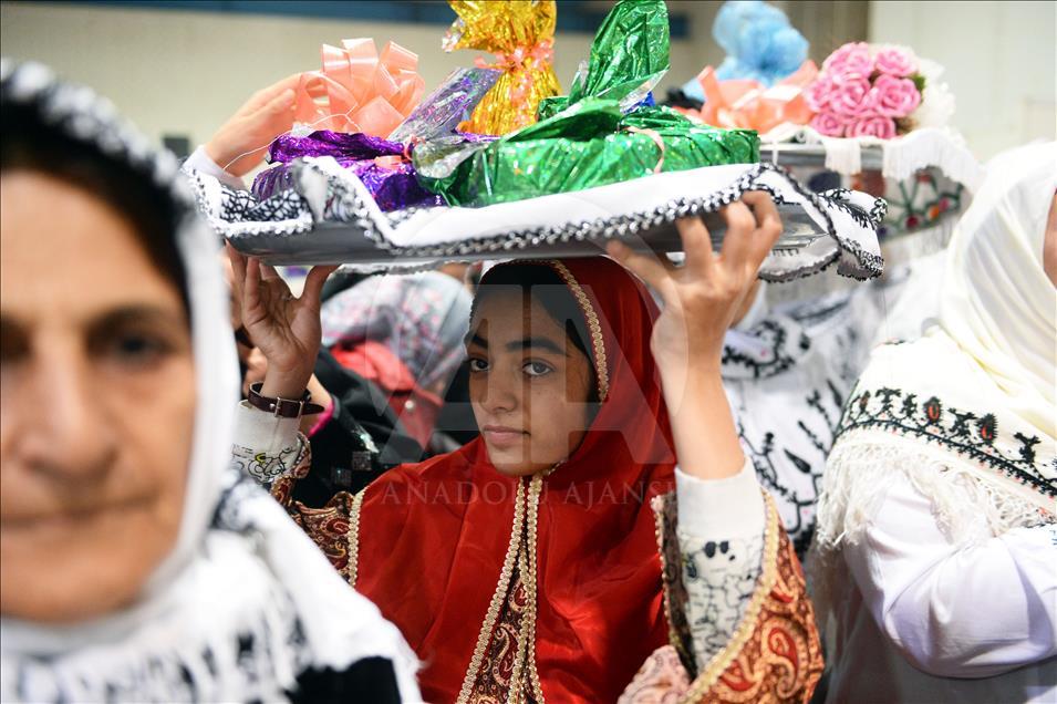 La ceremonia nupcial colectiva llenó de color, alegría y fiesta la noche iraní. 25 parejas entre ellas, turcomanos, persas, kurdos y otros grupos étnicos, sellaron su compromiso en esta boda celebrada en el estado de Golestán, en el noreste de Irán. En Golestán, Irán el 22 de noviembre de 2018.
