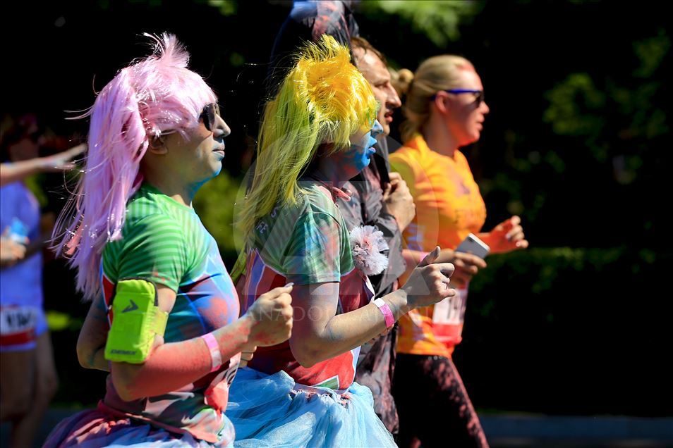 Atletas y ciudadanos disfrutan de una nueva versión de la 'Color Run' en Moscú, Rusia, el 2 de junio de 2019. A través de 5 km, los participantes son manchados con polvos de colores que recuerdan al festival Holi en India.