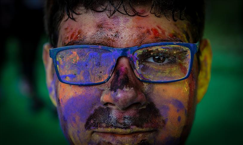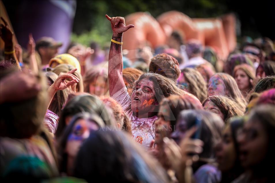 BURSA, TURQUÍA - 30 DE SEPTIEMBRE: Participantes cubiertos con polvo de color posan para una foto durante el festival "Color Sky 5k" en el parque botánico de Soganli en Bursa, Turquía. Cerca de mil personas participaron en la carrera. Sergen Sezgin - Agencia Anadolu