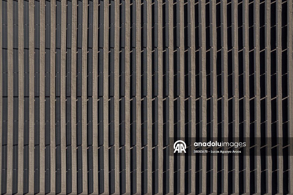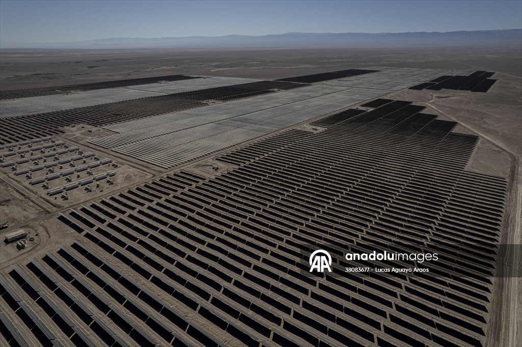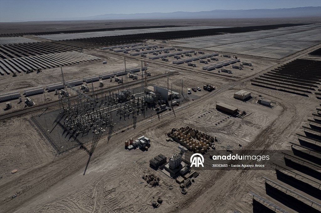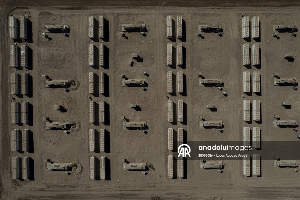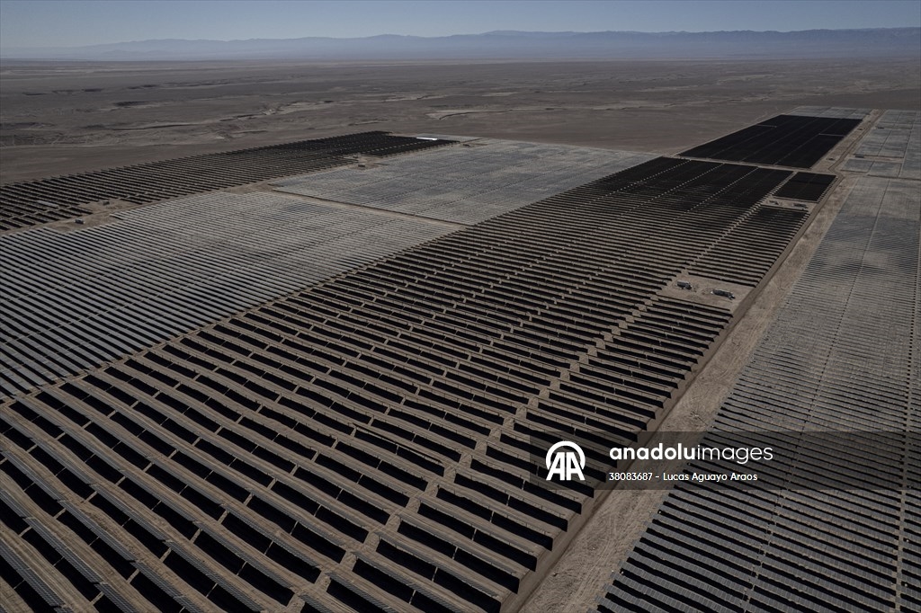 Vista aérea de la planta fotovoltaica ubicada en Quillagua, Chile, el 10 de mayo de 2025. Se trata de la planta solar con almacenamiento en baterías más grande de América Latina. El proyecto, desarrollado por la empresa británica Contour Global, integra 452.000 paneles solares y 267 módulos de almacenamiento, lo que permite entregar 200 MW durante 6,2 horas tras la puesta del sol, gracias a una capacidad de 1,2 GWh. Su energía equivale al consumo eléctrico de unas 122.000 viviendas, marcando un hito clave en la transición energética de Chile al permitir el suministro nocturno de energía solar y estabilizar la red eléctrica.