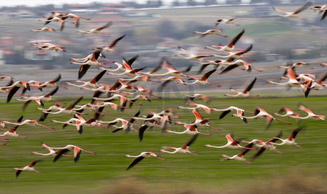 El lago Sel Kapani Dam, ubicado en el distrito de Golbasi de Ankara, Turquía, el 16 de abril de 2021. El lago es un importante paso de aves migratorias, especialmente flamencos.Aytaç Ünal