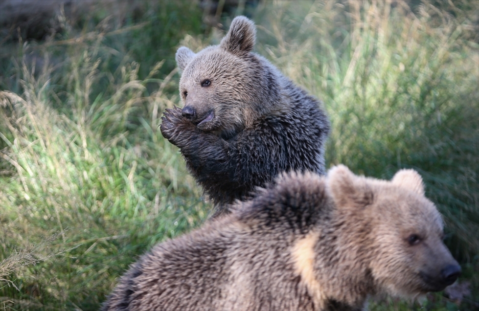 Cachorros de oso pardo se ven en el Centro de Rehabilitación y Rescate de Vida Silvestre Ovakorusu Celal Acar en Bursa, Turquía, el 17 de noviembre de 2020. Los cachorros de oso pardo, separados de su madre e incapaces de vivir en la naturaleza, se convirtieron en los nuevos residentes del centro de rehabilitación donde son tomados bajo protección en el distrito de Karacabey de Bursa. Los cuidados generales de los ositos, que tienen una edad media de 8 meses, los realizan veterinarios especialistas en el centro de la zona habilitada para ellos. Los osos se alimentan con peras, zanahorias, manzanas, fruta fresca y pan, así como piensos especiales ricos en proteínas.Sergen Sezgin