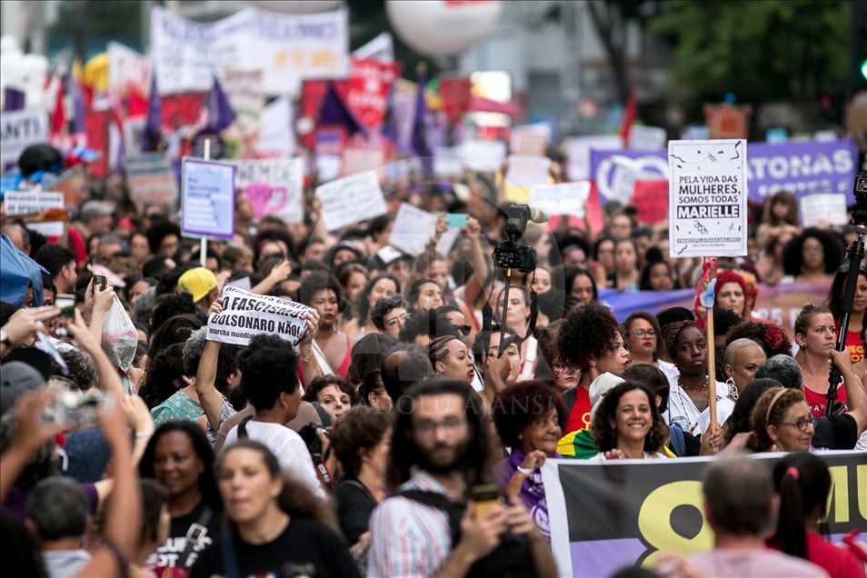 SAO PAULO, BRASIL, 8 DE MARZO: Cientos de mujeres participan en una marcha que conmemora el Día Internacional de la Mujer, en la Avenida Paulista de la ciudad de Sao Paulo, Brasil, el 8 de marzo de 2019. Dario Oliveira - Agencia Anadolu
