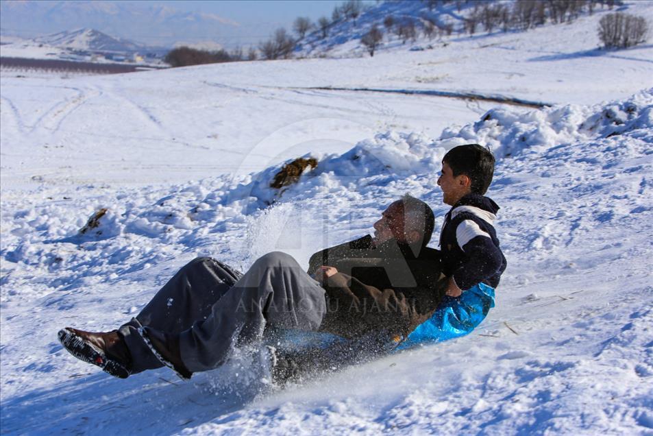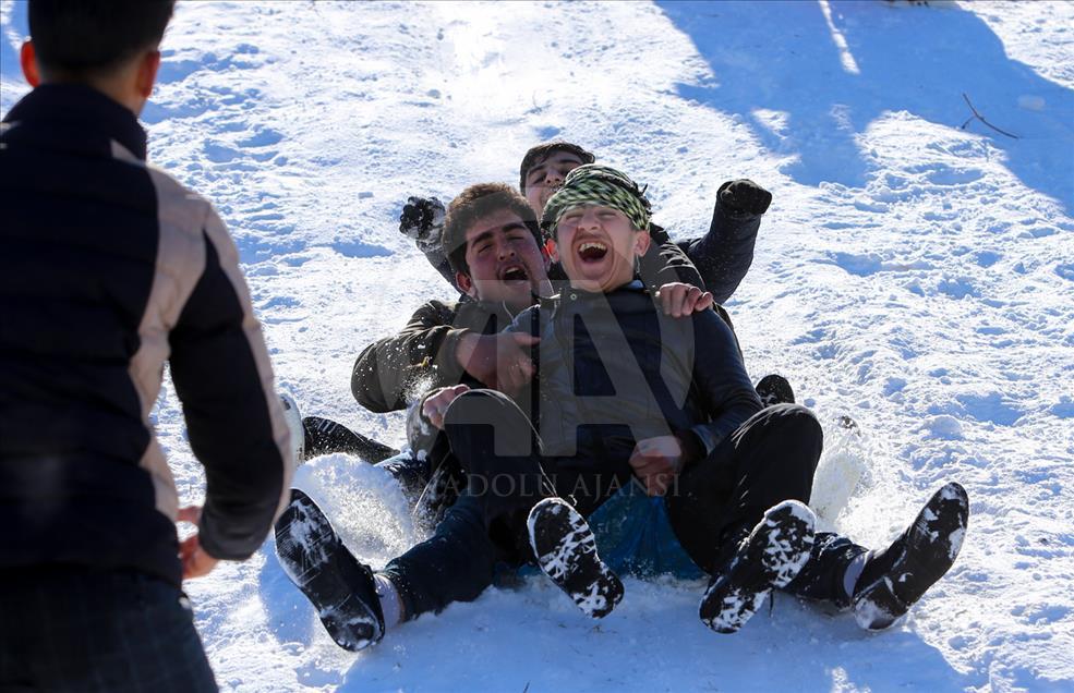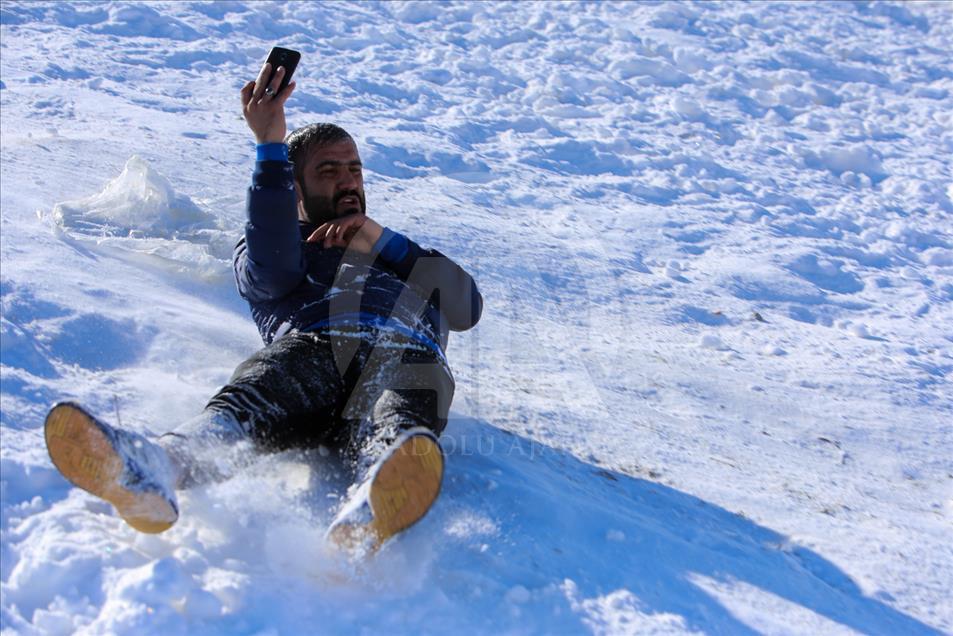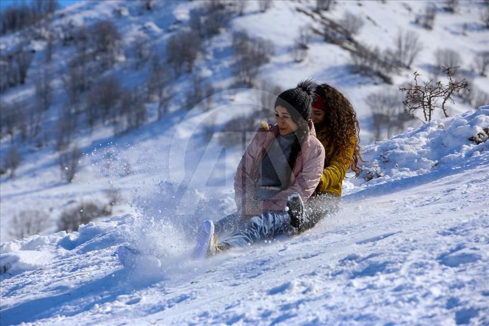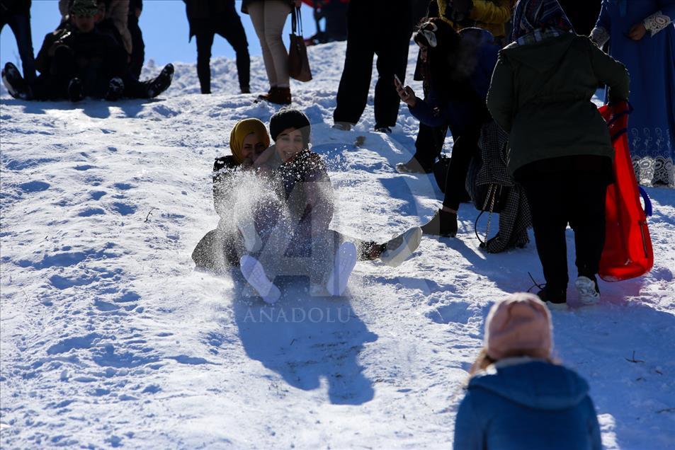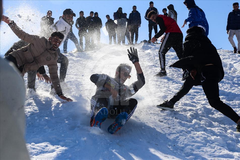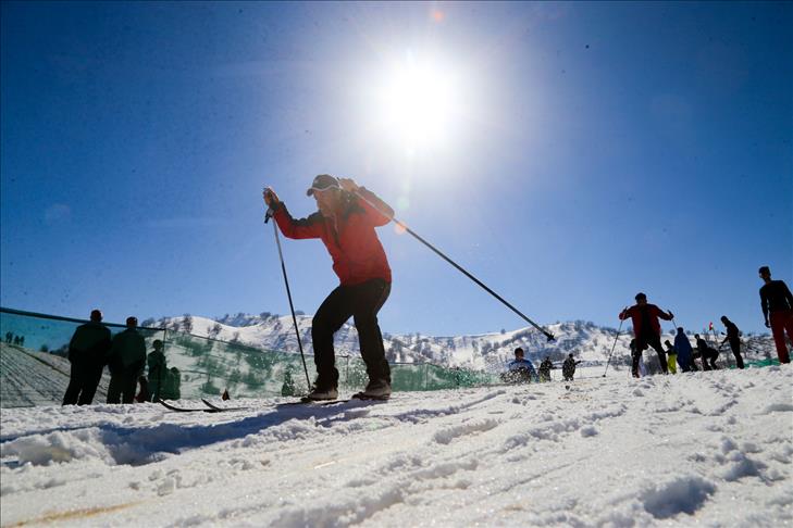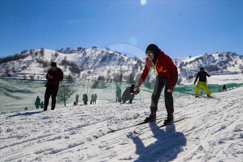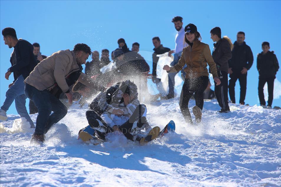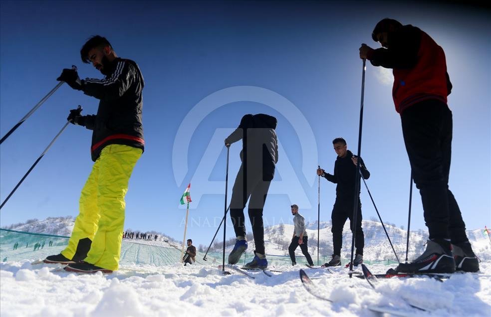 La gente esquía durante un festival de nieve en Solimania, Irak, el 22 de enero de 2019. (Feriq Ferec - Agencia Anadolu) Feriq Fereç