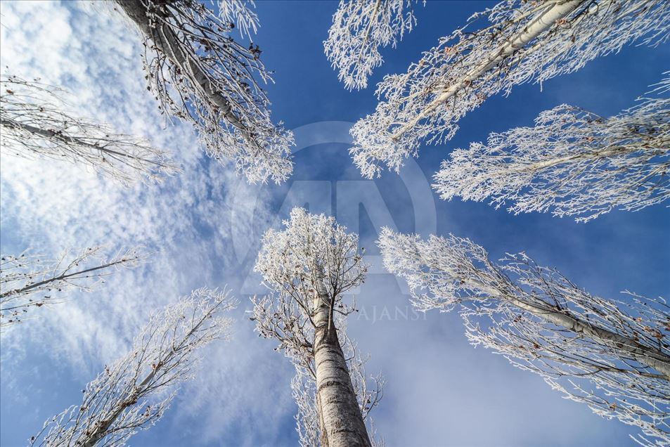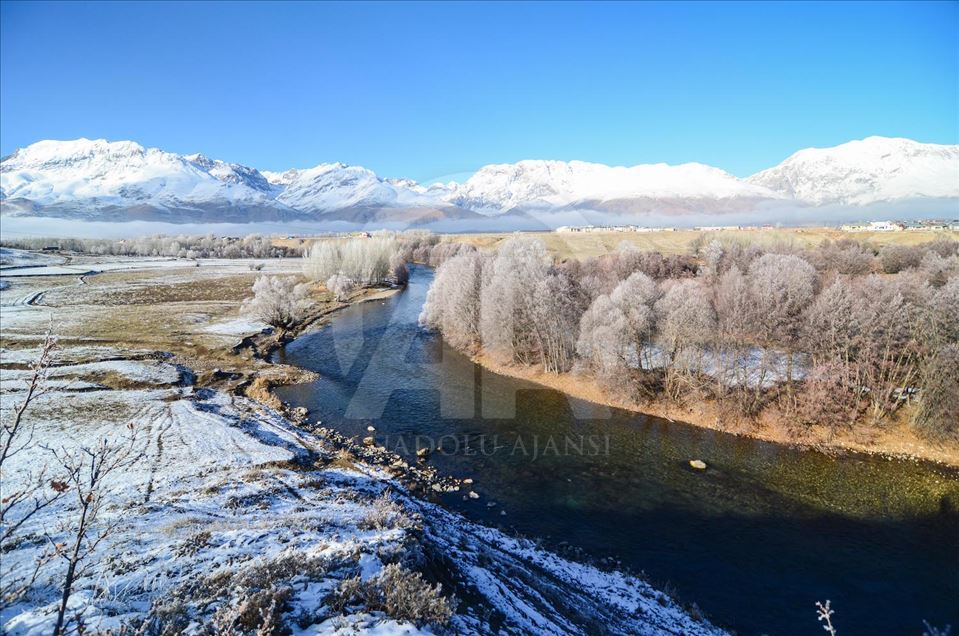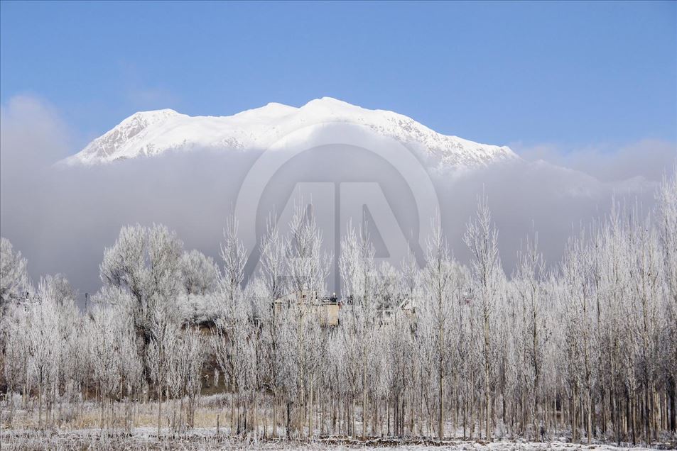Imagenes de los paisaje, árboles y plantas cubiertos de nieve, después de una fuerte nevada en el distrito de Ovacik de Tunceli, Turquía