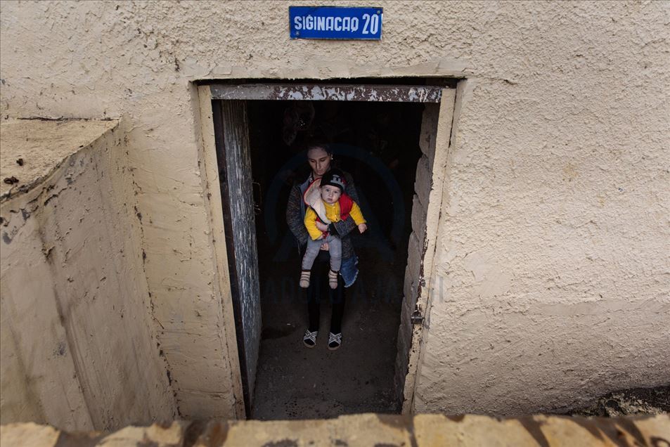 Un grupo de civiles azerbaiyanos comenzaron a vivir en refugios después de los ataques del Ejército armenio con misiles de largo alcance durante 10 días en Terter, Azerbaiyán el 6 de octubre, 2020.Onur Çoban