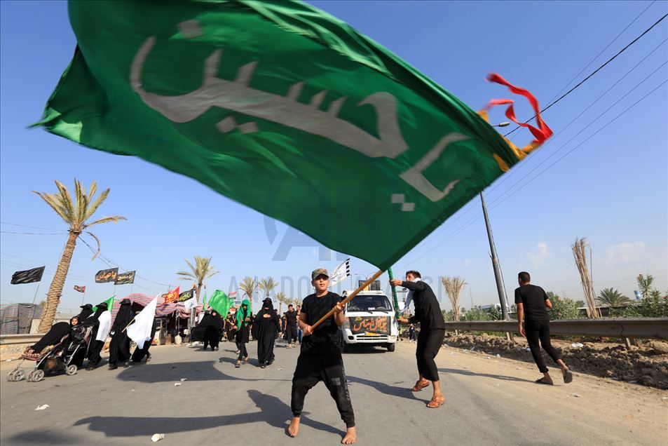 Peregrinos musulmanes chiítas caminan para llegar a la ciudad de Karbala, en el sur de Irak, para el Arbaeen, a pesar de la pandemia del nuevo coronavirus (COVID-19), en Bagdad, Irak, el 05 de octubre, 2020. Arbaeen es el último día de el período de duelo de 40 días que sigue al aniversario del martirio del nieto del profeta Mahoma, Hussein, en el siglo VII.Murtadha Al-Sudani