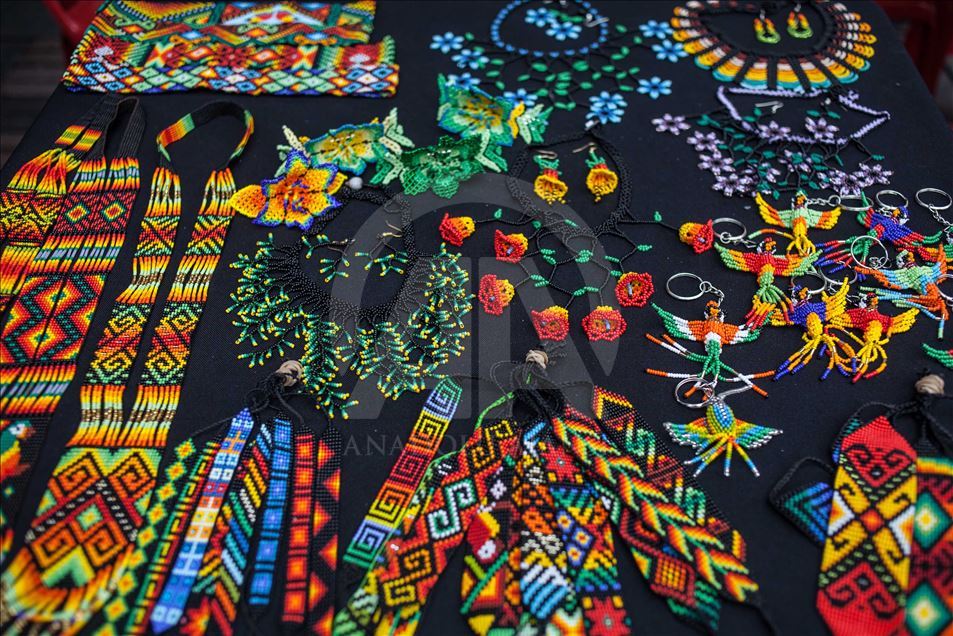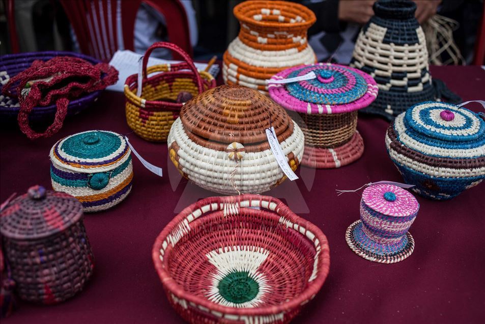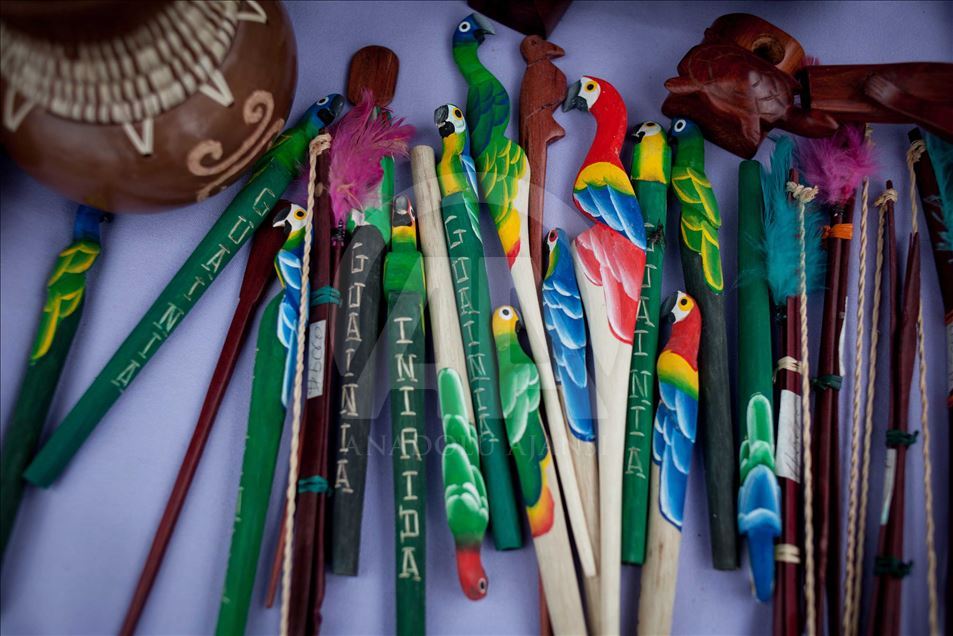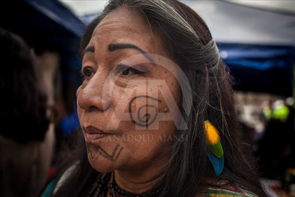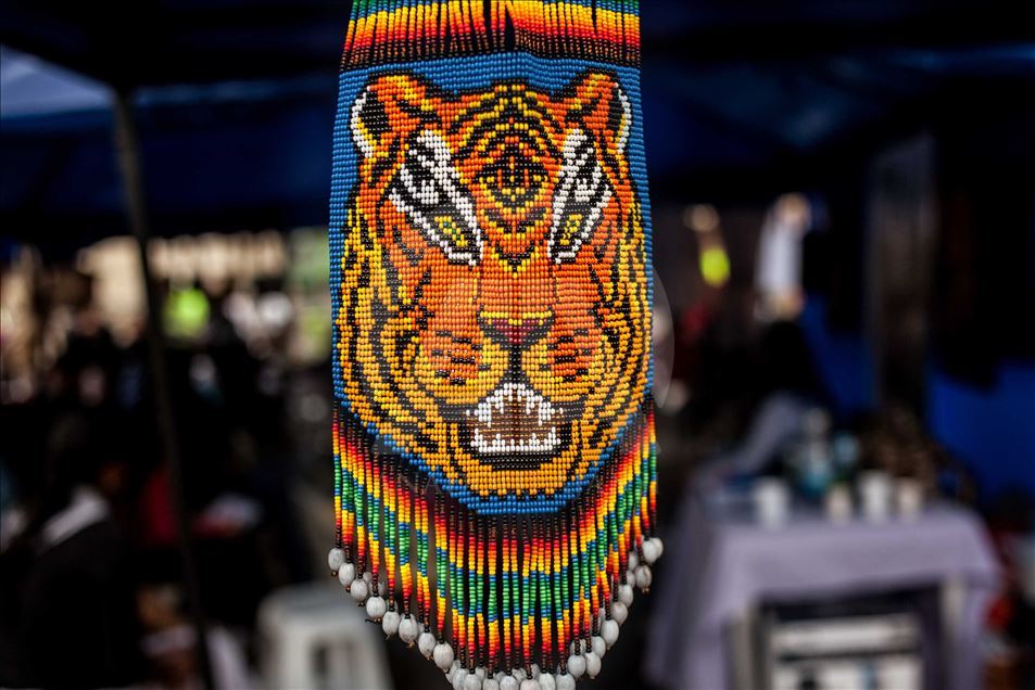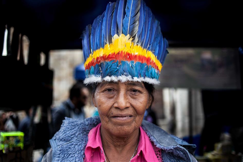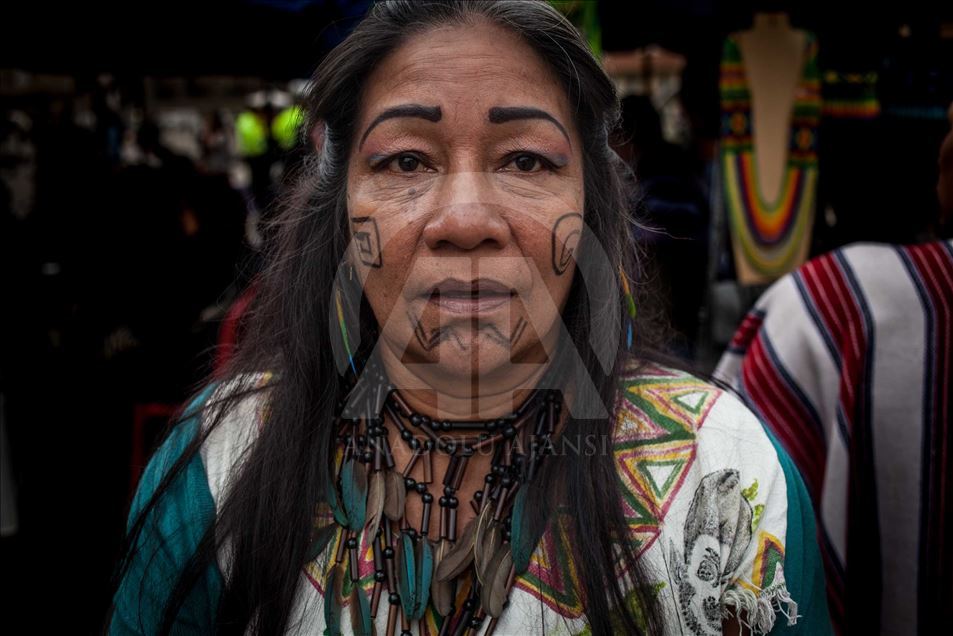 Indígenas de la Amazonía colombiana visitan la capital para intercambiar su cultura en un mercado que vende y socializa con diferentes culturas indígenas en Bogotá, Colombia, el 20 de agosto de 2019. Juancho Torres - Agencia Anadolu