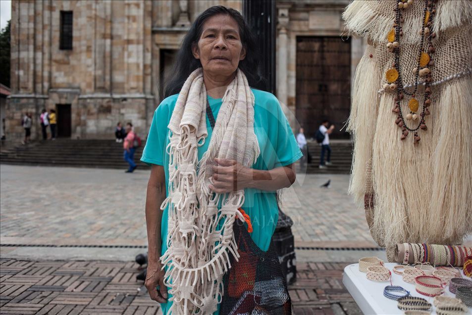 Indígenas de la Amazonía colombiana visitan la capital para intercambiar su cultura en un mercado que vende y socializa con diferentes culturas indígenas en Bogotá, Colombia, el 20 de agosto de 2019.Juancho Torres - Agencia Anadolu
