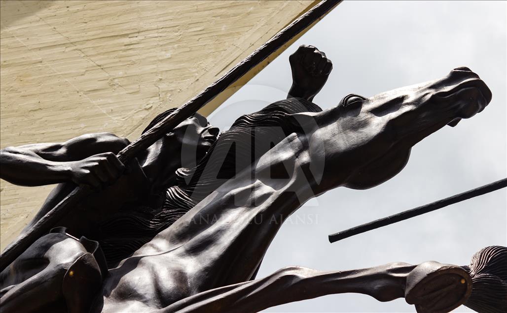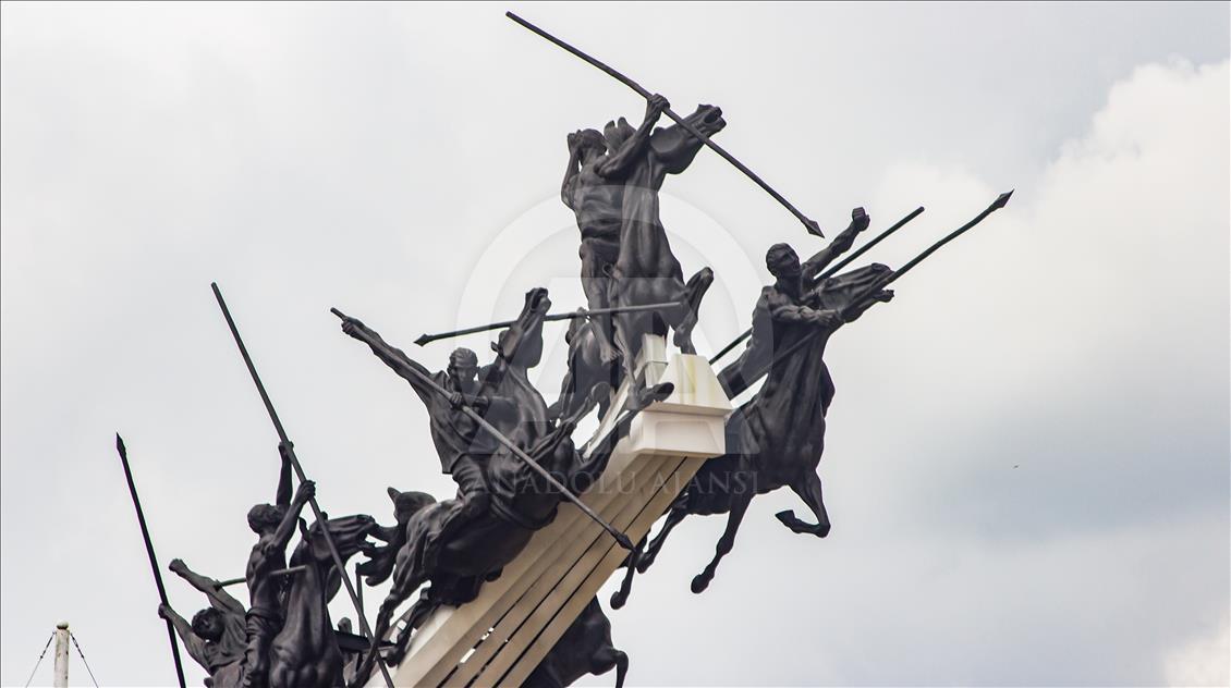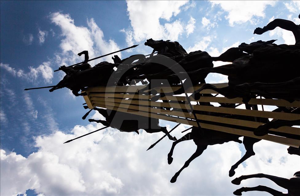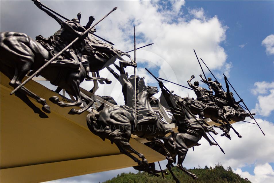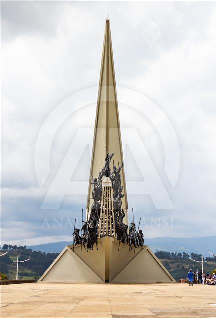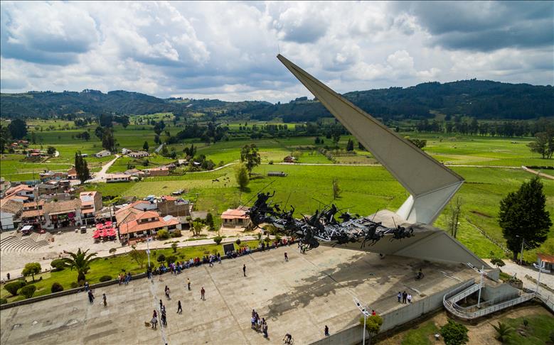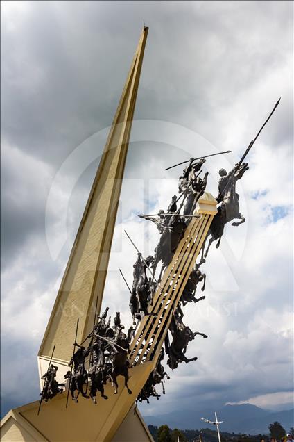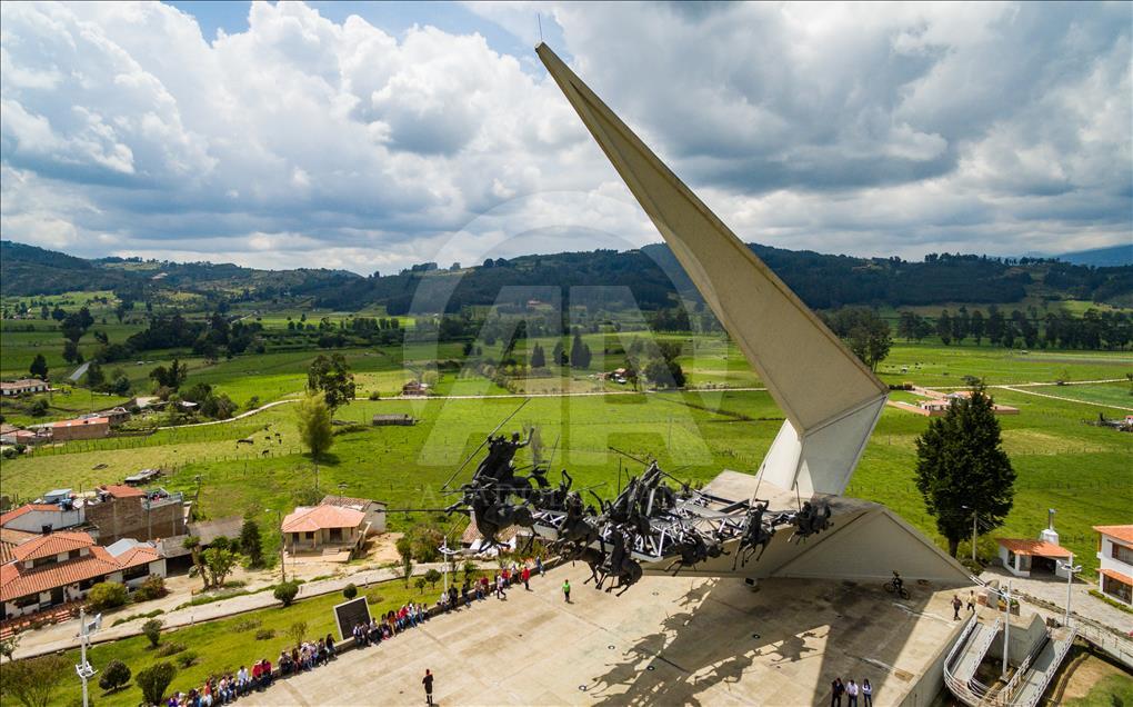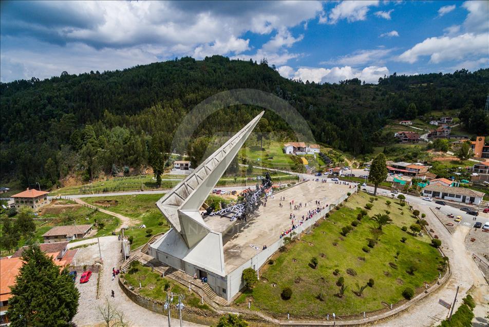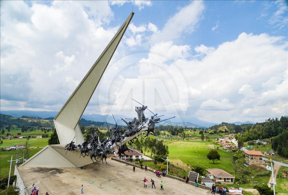 El monumento a los lanceros en Boyacá, Colombia, el 4 de noviembre del 2018. Ubicado en el Pantano de Vargas, es un monumento erigido por el artista colombiano Rodrigo Arenas Betancur y diseño estructural por el ingeniero Guillermo González Zuleta, localizado en el departamento de Boyacá como homenaje a la batalla del Pantano de Vargas ocurrida el 25 de julio de 1819.
