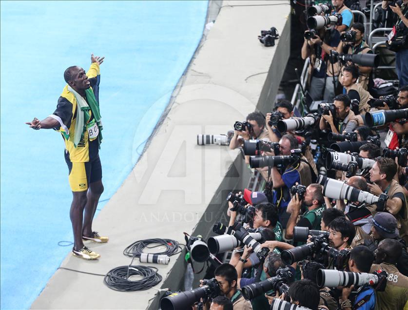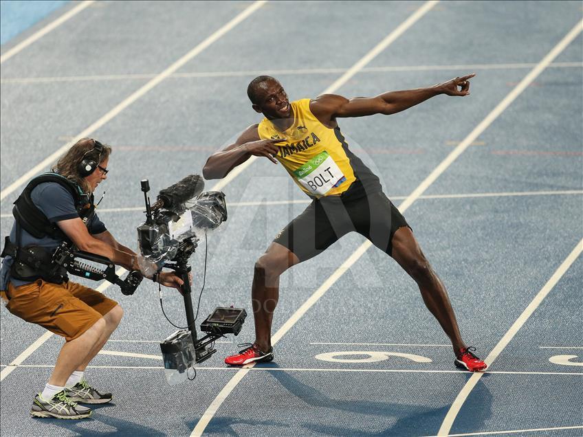 Así celebró Usain Bolt su victoria en los Juegos Olímpicos de Río de Janeiro, tras ganar la medalla de oro. (Salih Zeki Fazlıoğlu - Agencia Anadolu)Salih Zeki Fazlıoğlu