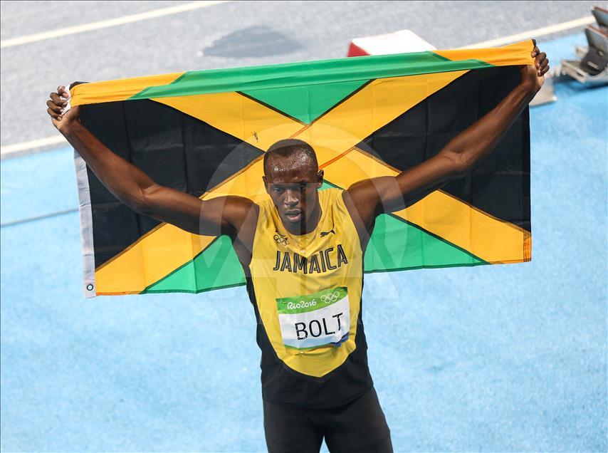 Usain Bolt se ha convertido en una de las personalidades más conocidas y representativas de Jamaica. Aquí, levanta la bandera de su país para celebrar su victoria en los Juegos Olímpicos de Río. (Salih Zeki Fazlıoğlu - Agencia Anadolu)Salih Zeki Fazlıoğlu