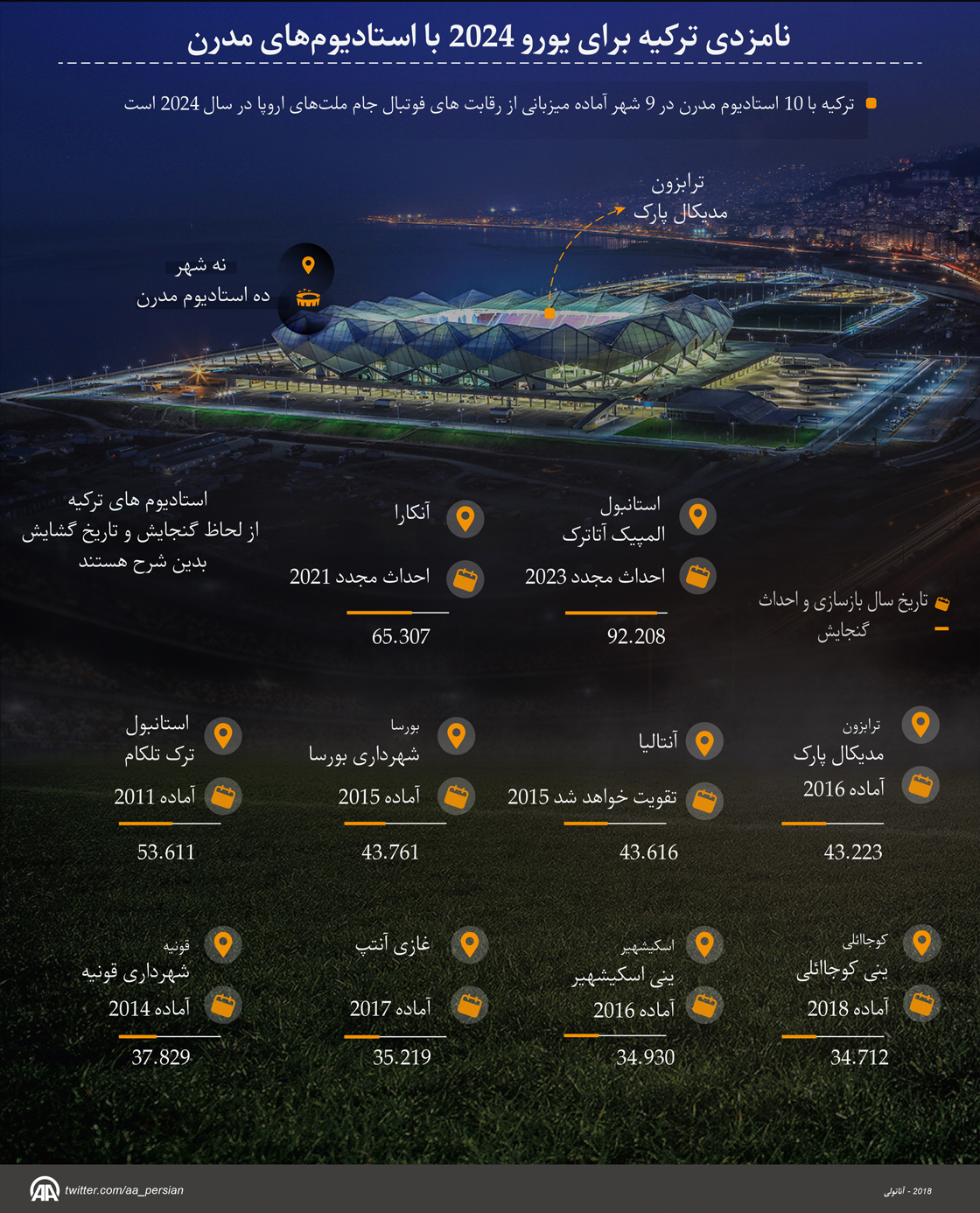 نامزدی ترکیه برای یورو 2024 با استادیوم‌های مدرن