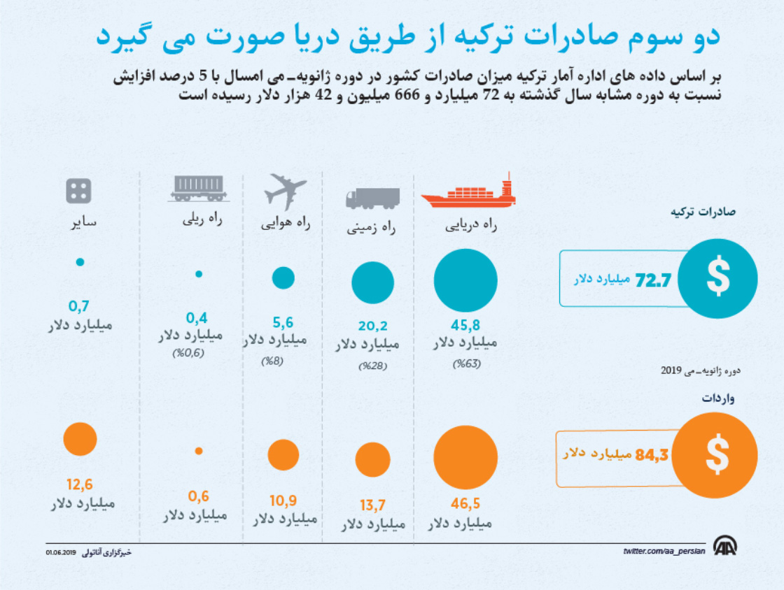 دو سوم صادرات ترکیه از طریق دریا صورت می گیرد