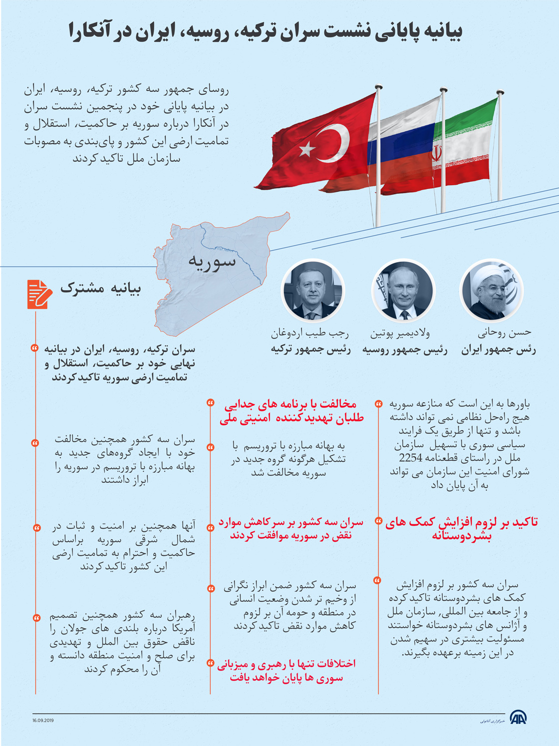 بیانیه پایانی نشست سران ترکیه، روسیه، ایران در آنکارا